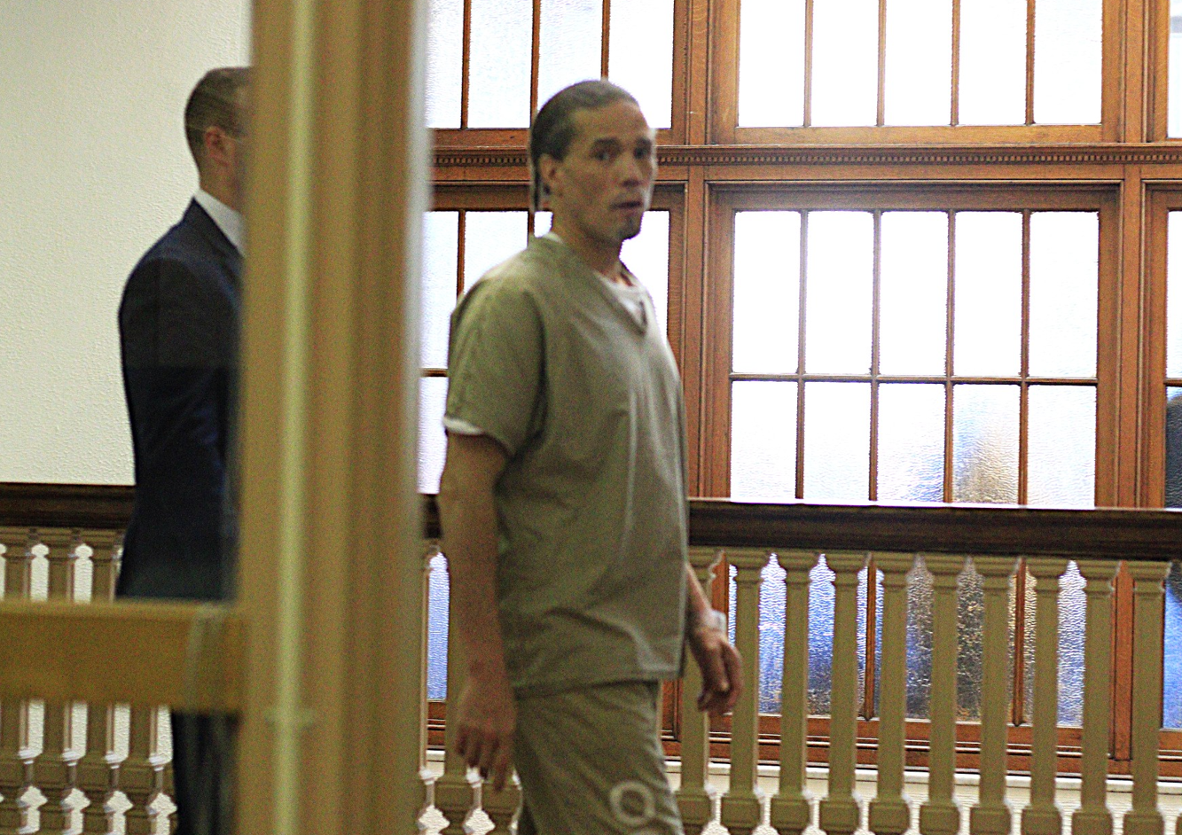 Michael Moon, Messiah Nantwi’s roommate at the Mid-State Correctional Facility, entering court to testify against Jonah Levy, the former state prison guard charged with Nantwi’s 2025 murder. Photo credit: JB Nicholas.